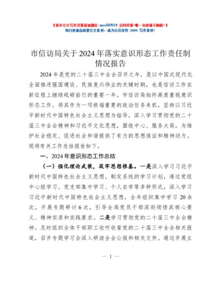 / 市信访局关于2024年落实意识形态工作责任制情况报告