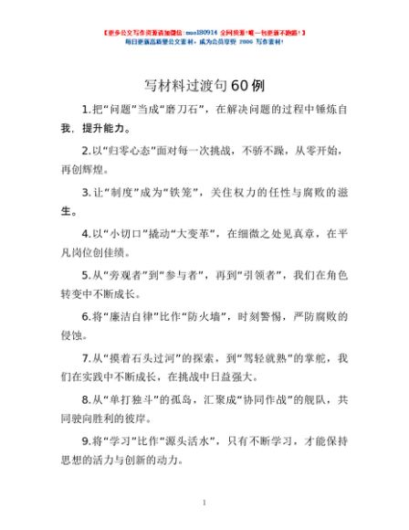 / 写材料过渡句60例
