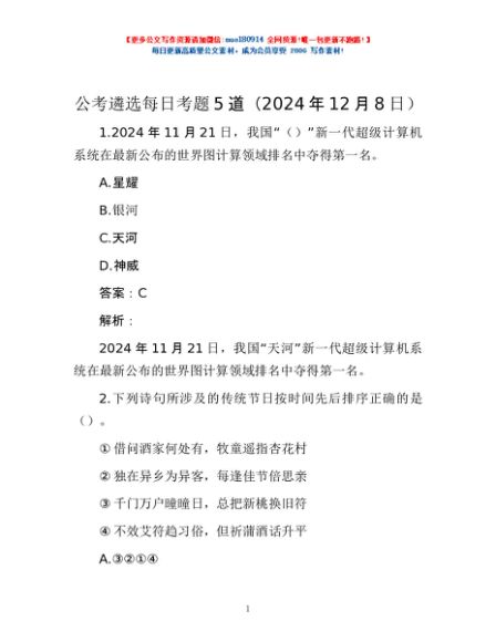 / 公考遴选每日考题5道(2024年12月8日)