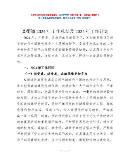 / 某街道2024年工作总结及2025年工作计划
