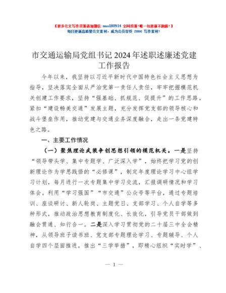 / 市交通运输局党组书记2024年述职述廉述党建工作报告