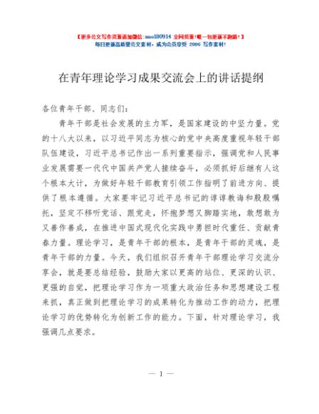 / 在青年理论学习成果交流会上的讲话提纲