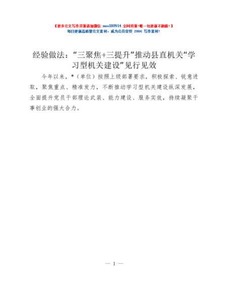 / 经验做法:“三聚焦+三提升”推动县直机关“学习型机关建设”见行见效