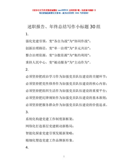 / 述职报告、年终总结写作小标题30组
