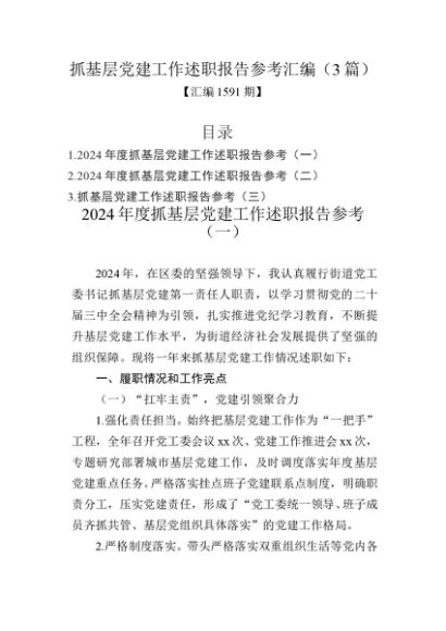 / 汇编1591期-抓基层党建工作述职报告参考汇编(3篇)