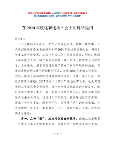 / 在2024年度述职述廉大会上的讲话提纲