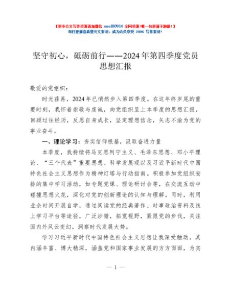 / 坚守初心,砥砺前行——2024年第四季度党员思想汇报
