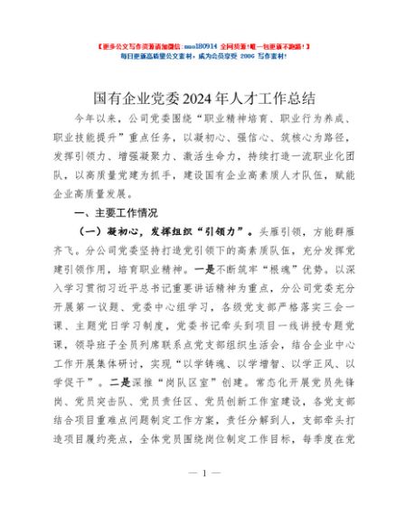 / 国有企业党委2024年人才工作总结
