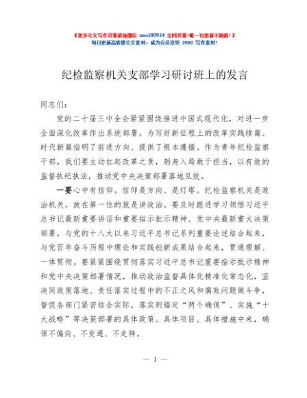 / 纪检监察机关支部学习研讨班上的发言