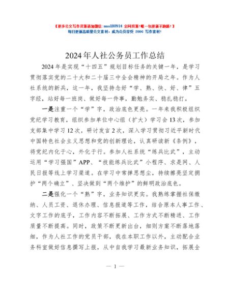 / 2024年人社公务员工作总结
