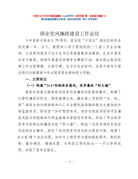 / 国企党风廉政建设工作总结