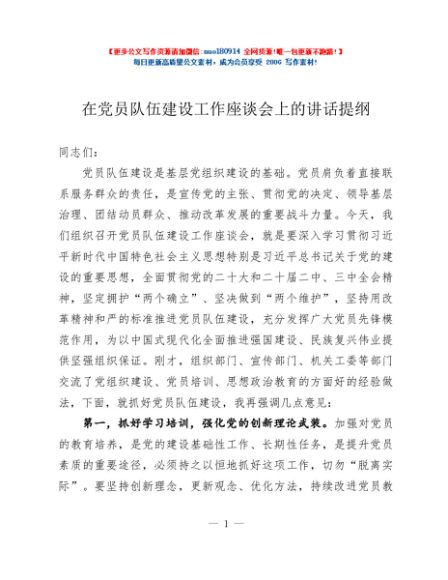 / 在党员队伍建设工作座谈会上的讲话提纲