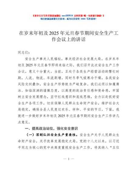 / 在岁末年初及2025年元旦春节期间安全生产工作会议上的讲话