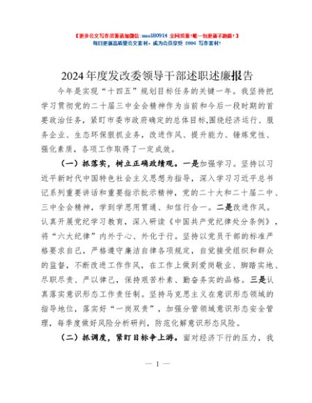 / 2024年度发改委领导干部述职述廉报告