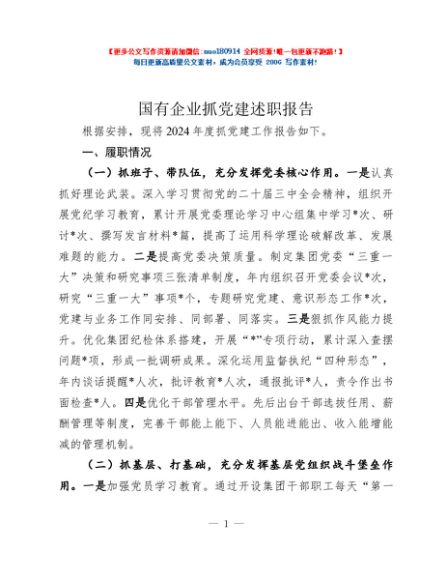 / 国有企业抓党建述职报告