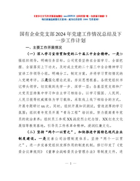 / 国有企业党支部2024年党建工作情况总结及下一步工作计划