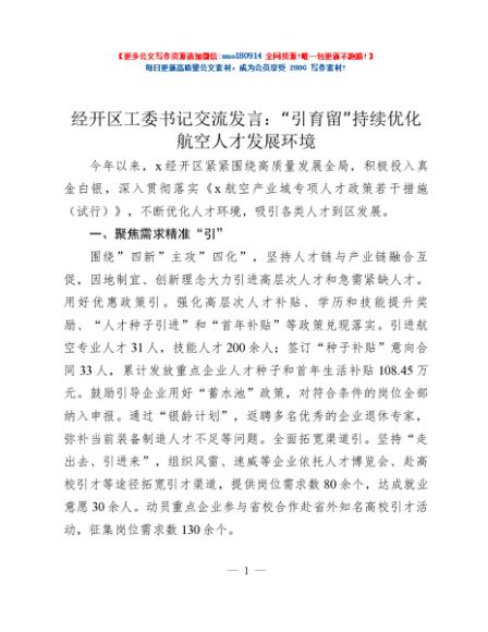 / 经开区工委书记交流发言:“引育留”持续优化航空人才发展环境