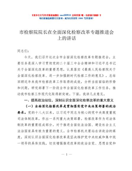 / 市检察院院长在全面深化检察改革专题推进会上的讲话