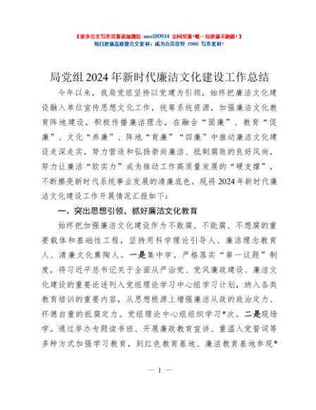 / 局党组2024年新时代廉洁文化建设工作总结