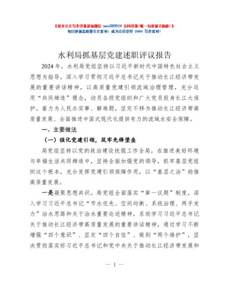 / 水利局抓基层党建述职评议报告