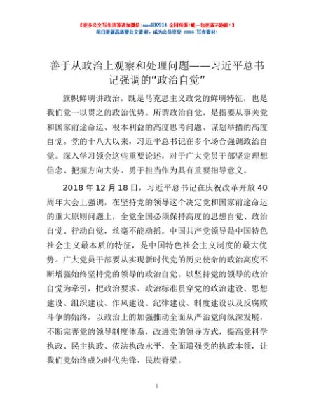 善于从政治上观察和处理问题——习近平总书记强调的“政治自觉”
