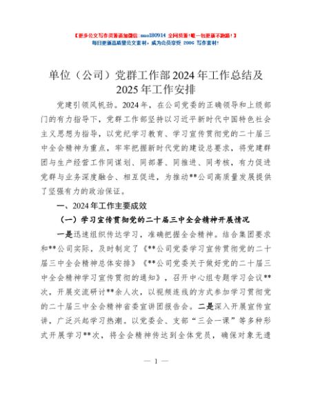 / 单位(公司)党群工作部2024年工作总结及2025年工作安排
