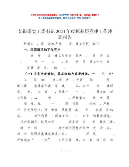 / 某街道党工委书记2024年度抓基层党建工作述职报告