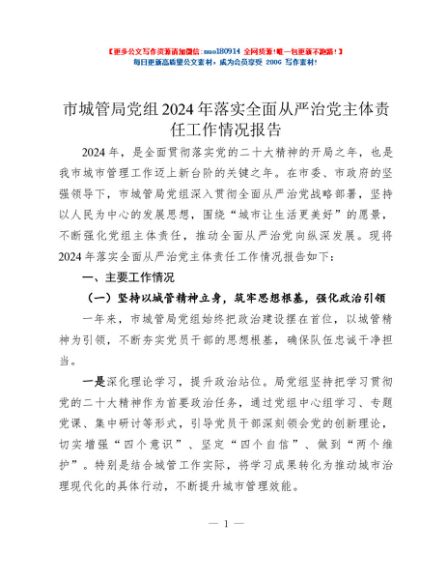 / 市城管局党组2024年落实全面从严治党主体责任工作情况报告