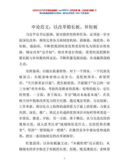 / 申论范文:以改革锻长板、补短板