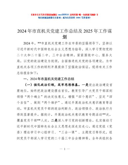 / 2024年市直机关党建工作总结及2025年工作谋划