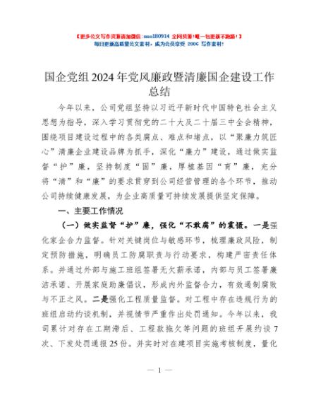 / 国企党组2024年党风廉政暨清廉国企建设工作总结