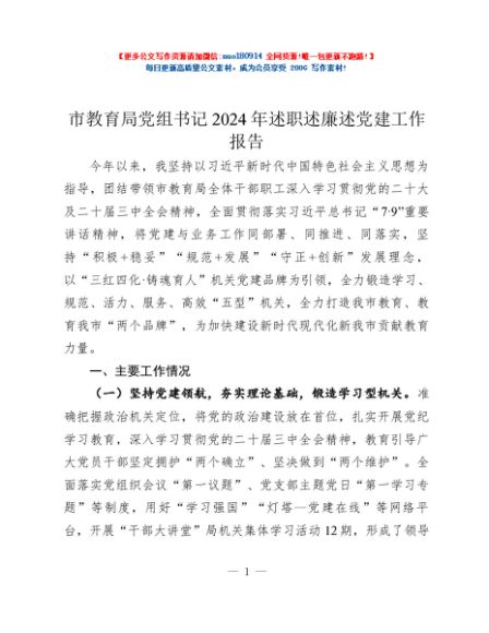 / 市教育局党组书记2024年述职述廉述党建工作报告