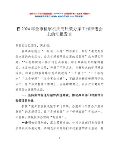 / 在2024年全市检察机关高质效办案工作推进会上的汇报发言