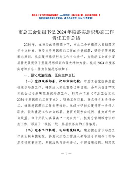 / 市总工会党组书记2024年度落实意识形态工作责任工作总结