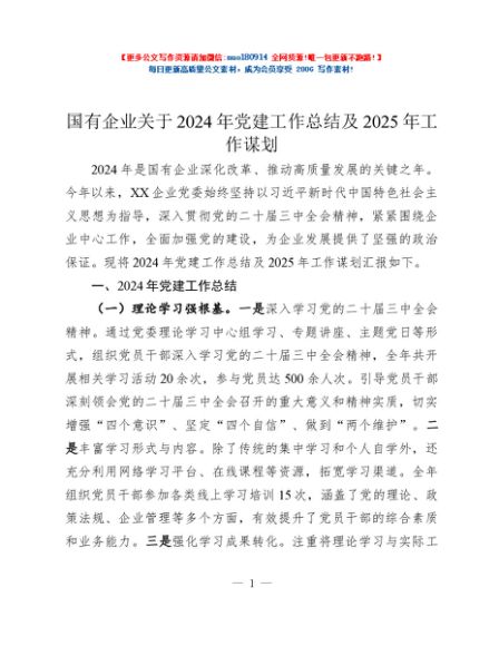 / 国有企业关于2024年党建工作总结及2025年工作谋划