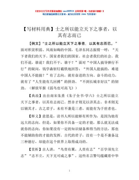 / 【写材料用典】士之所以能立天下之事者,以其有志而已