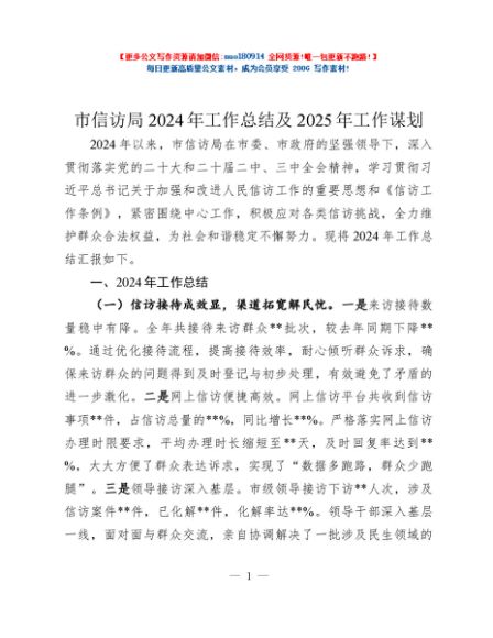 / 市信访局2024年工作总结及2025年工作谋划
