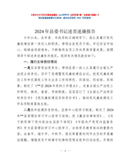 / 2024年县委书记述责述廉报告