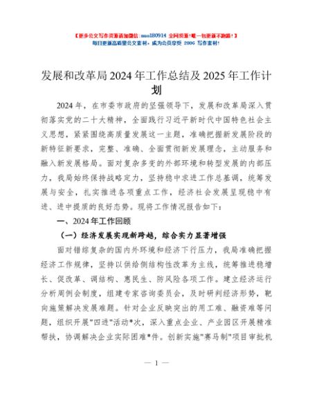 / 发展和改革局2024年工作总结及2025年工作计划