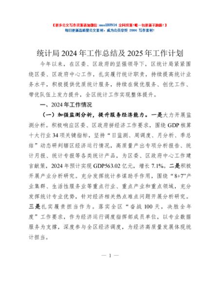 / 统计局2024年工作总结及2025年工作计划