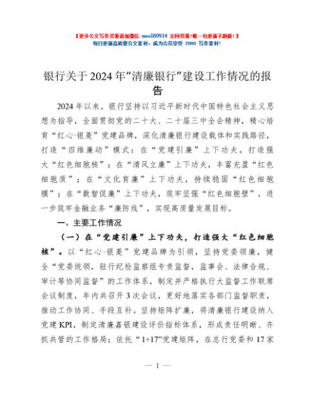 / 银行关于2024年“清廉银行”建设工作情况的报告