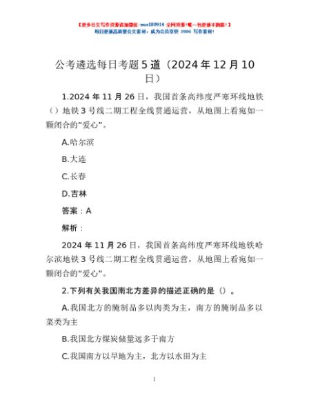 / 公考遴选每日考题5道(2024年12月10日)