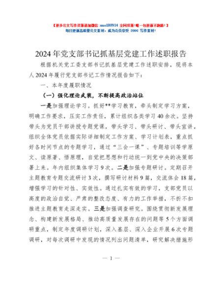 / 2024年党支部书记抓基层党建工作述职报告