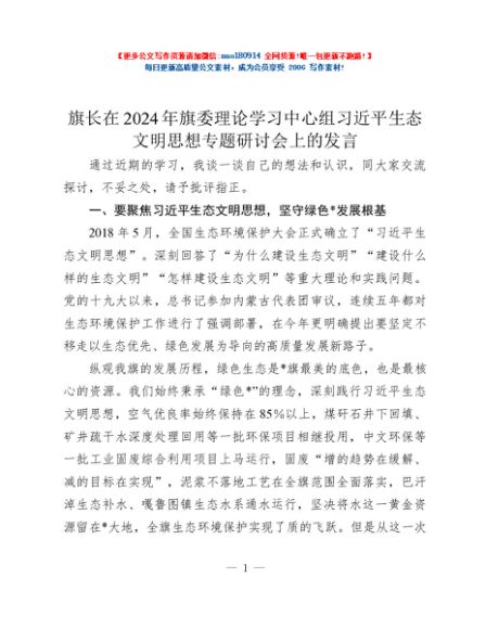 / 旗长在2024年旗委理论学习中心组习近平生态文明思想专题研讨会上的发言