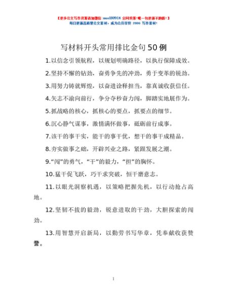 写材料开头常用排比金句50例