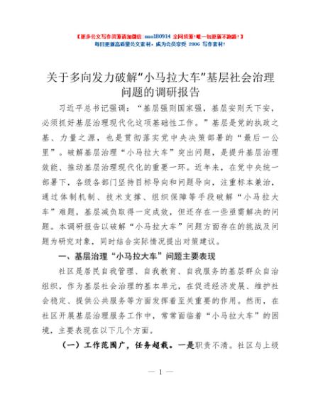 / 关于多向发力破解“小马拉大车”基层社会治理问题的调研报告