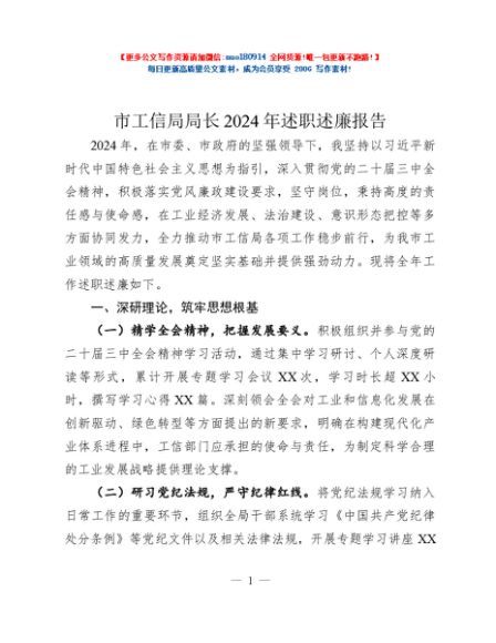 / 市工信局局长2024年述职述廉报告