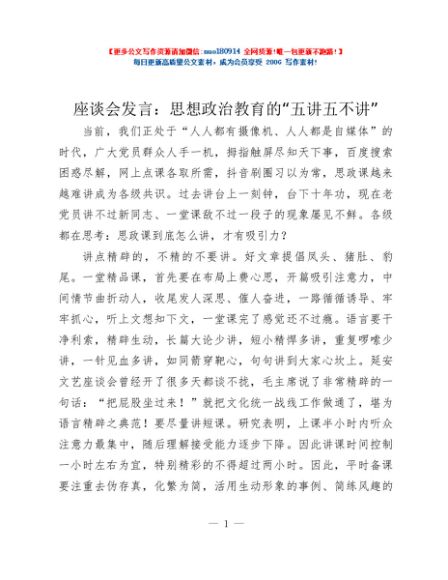 座谈会发言:思想政治教育的“五讲五不讲”
