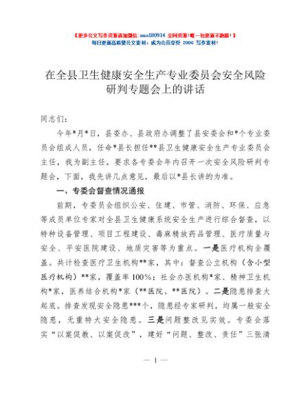 / 在全县卫生健康安全生产专业委员会安全风险研判专题会上的讲话