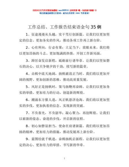 / 工作总结、工作报告结束语金句35例